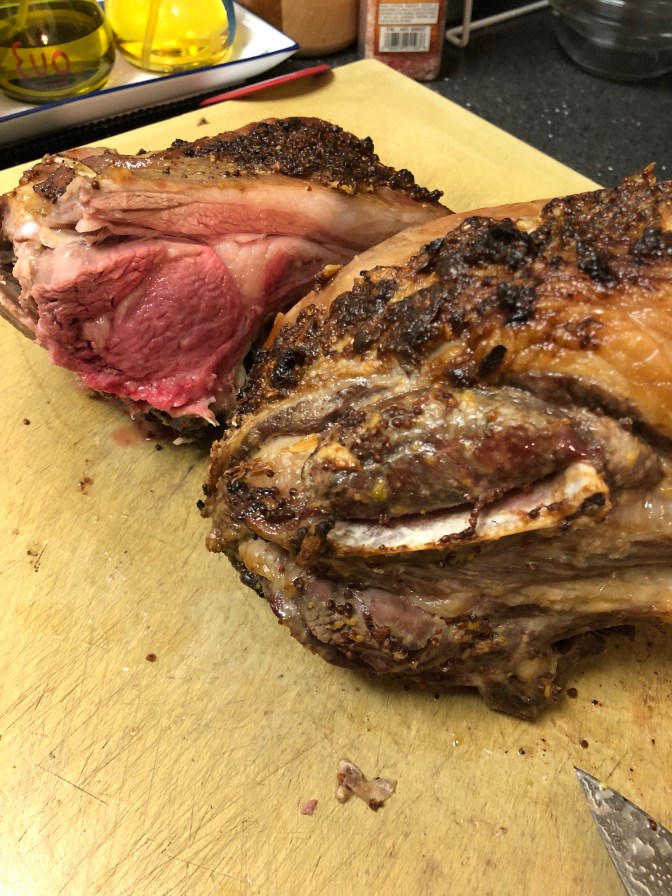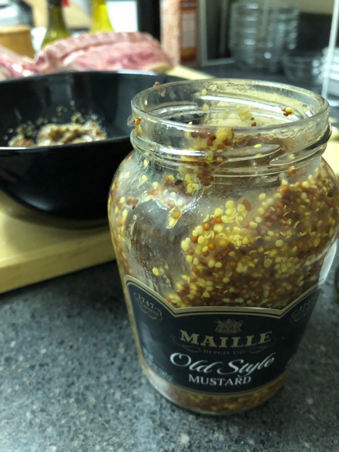 First rub the meat with the aforementioned sexy fucking garlic, then follow with whole grain mustard, mixed with minced ginger.