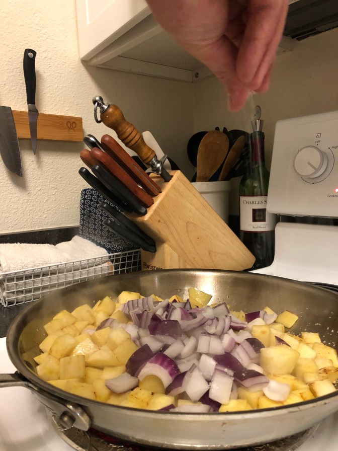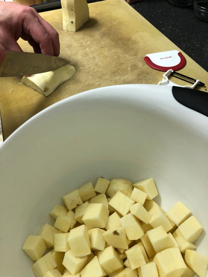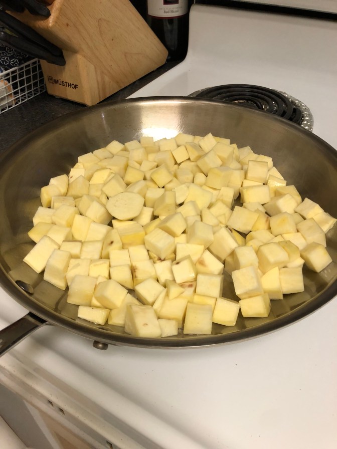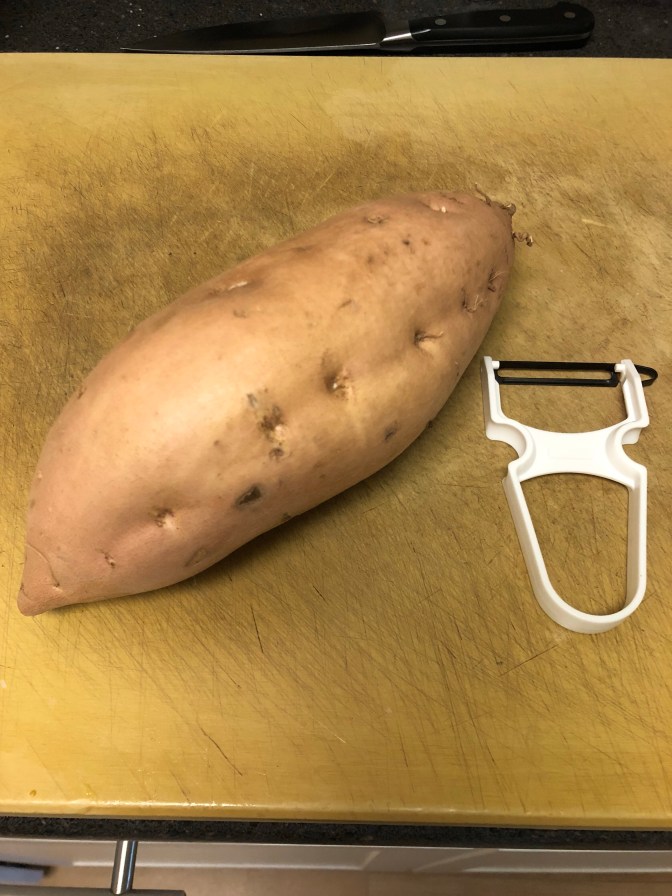 Continuing with the theme of this post, we thought we’d bought a sweet potato. Turns out it was a white sweet potato, which I’d never even heard of until this little glimpse behind the curtain, but I just fell back on what I knew about food: