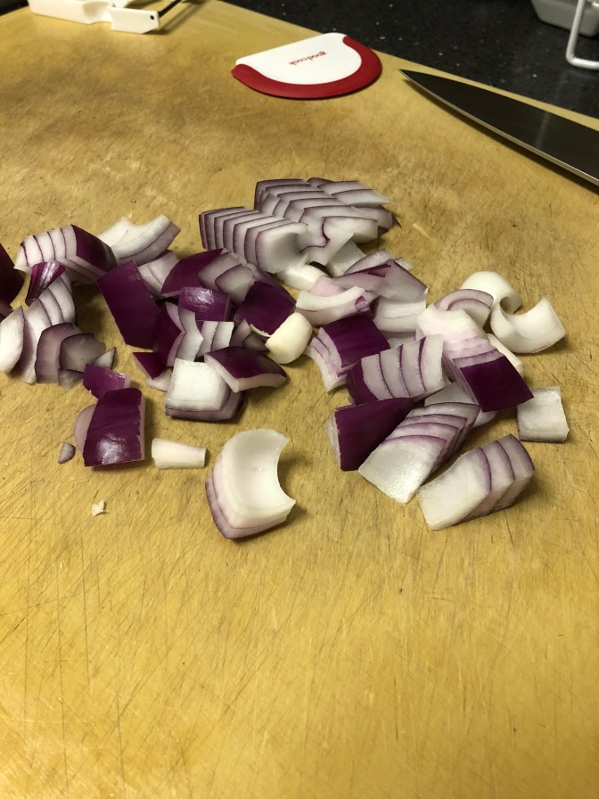 Medium diced a red onion.