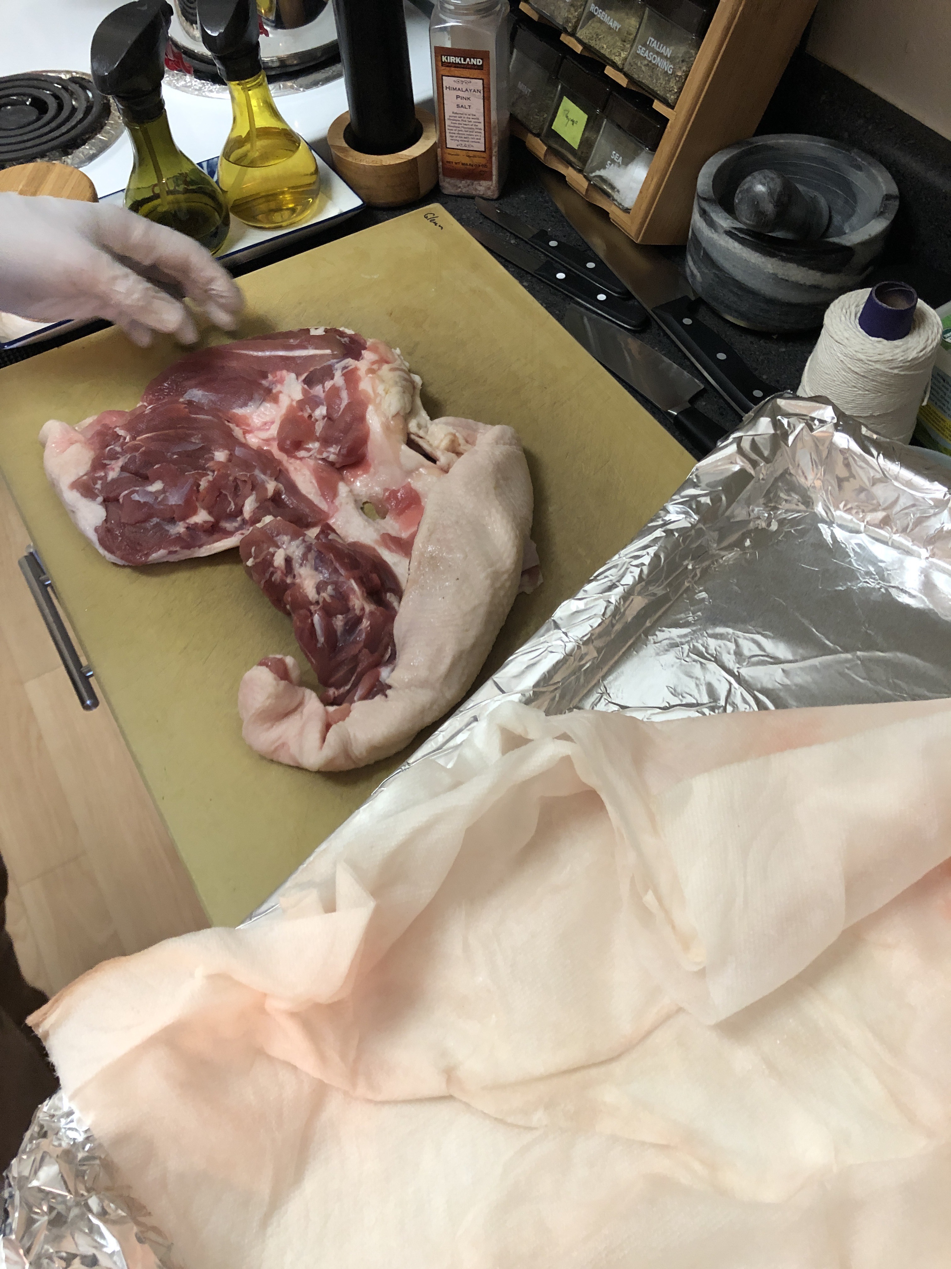 For this particular Thanksgiving, duck was the featured poultry of the meal (I’ll explain why, later), and the preparation required a complete de-boning of the bird, to be brined without bones — but keeping it whole and intact.