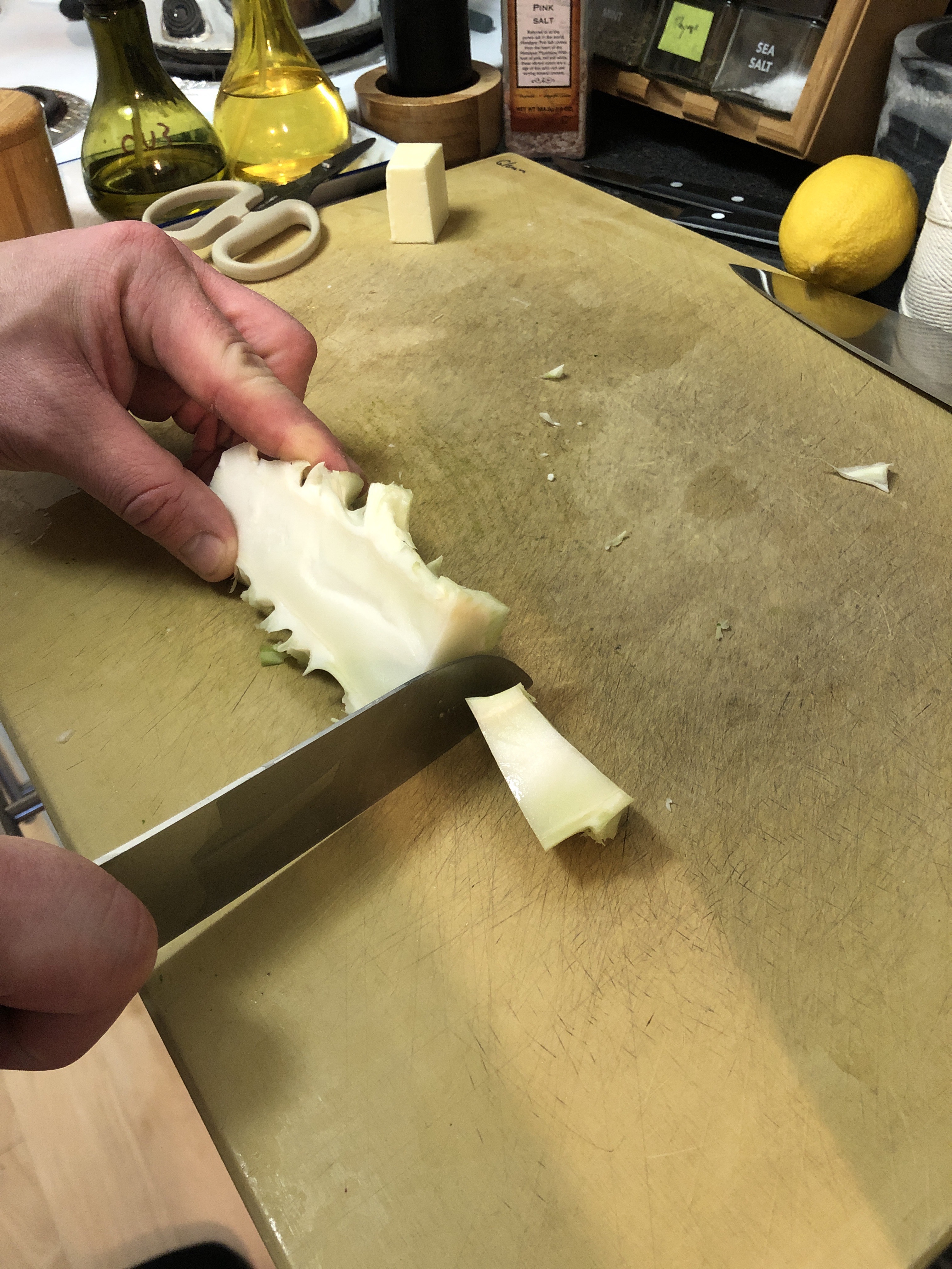 • Stem of cauliflower (cut no less than 3/4″ segments down the stem)