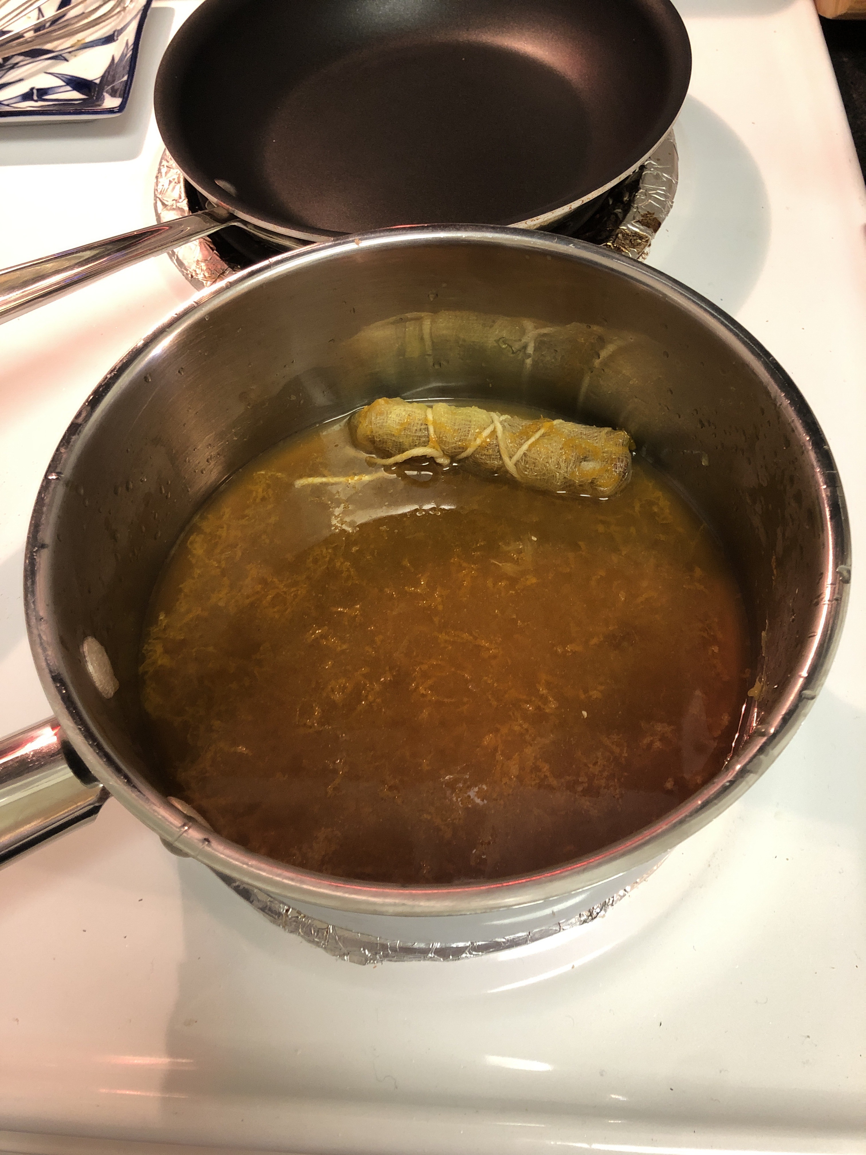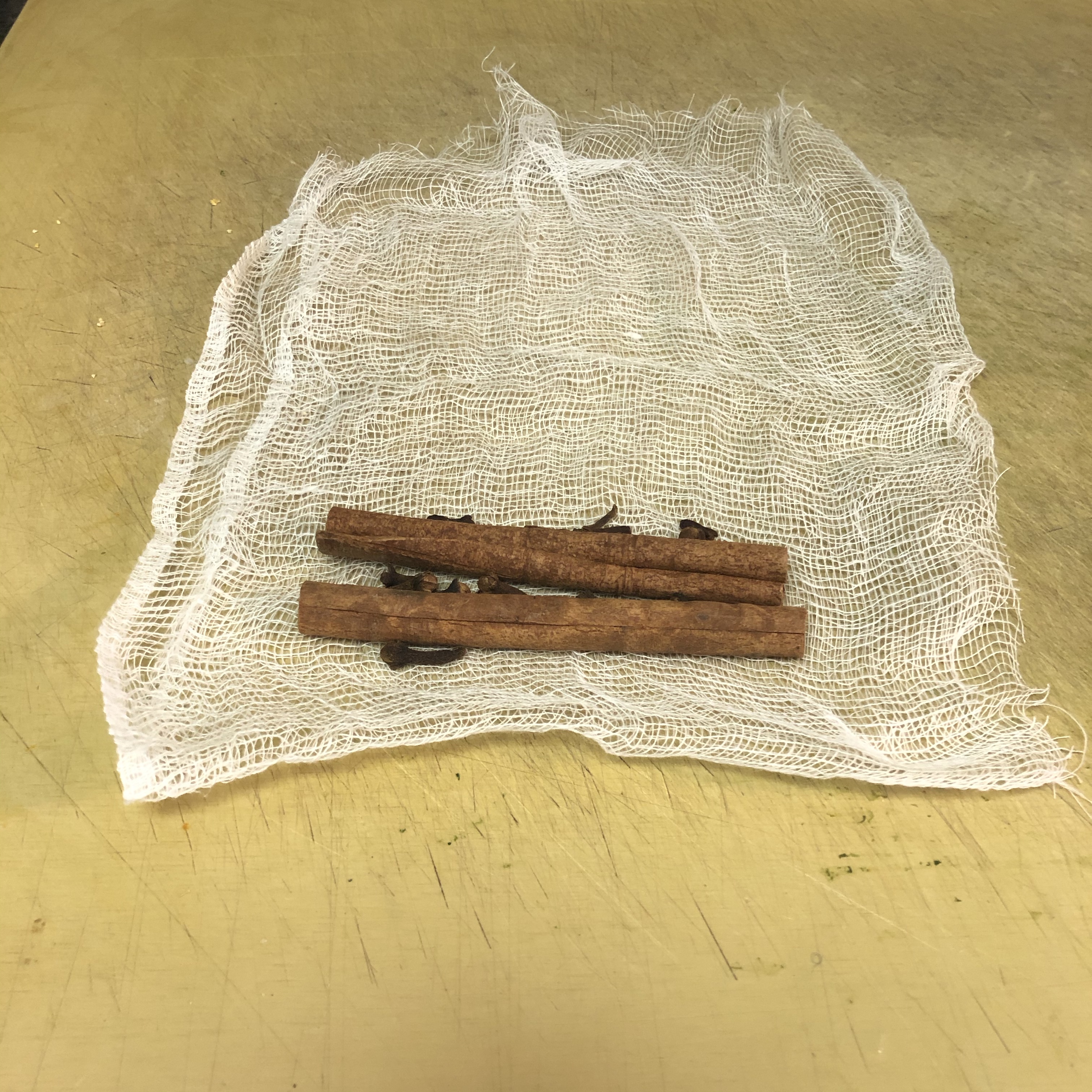And instead of grinding cloves we wrapped them up in cheesecloth with the cinnamon sticks.
