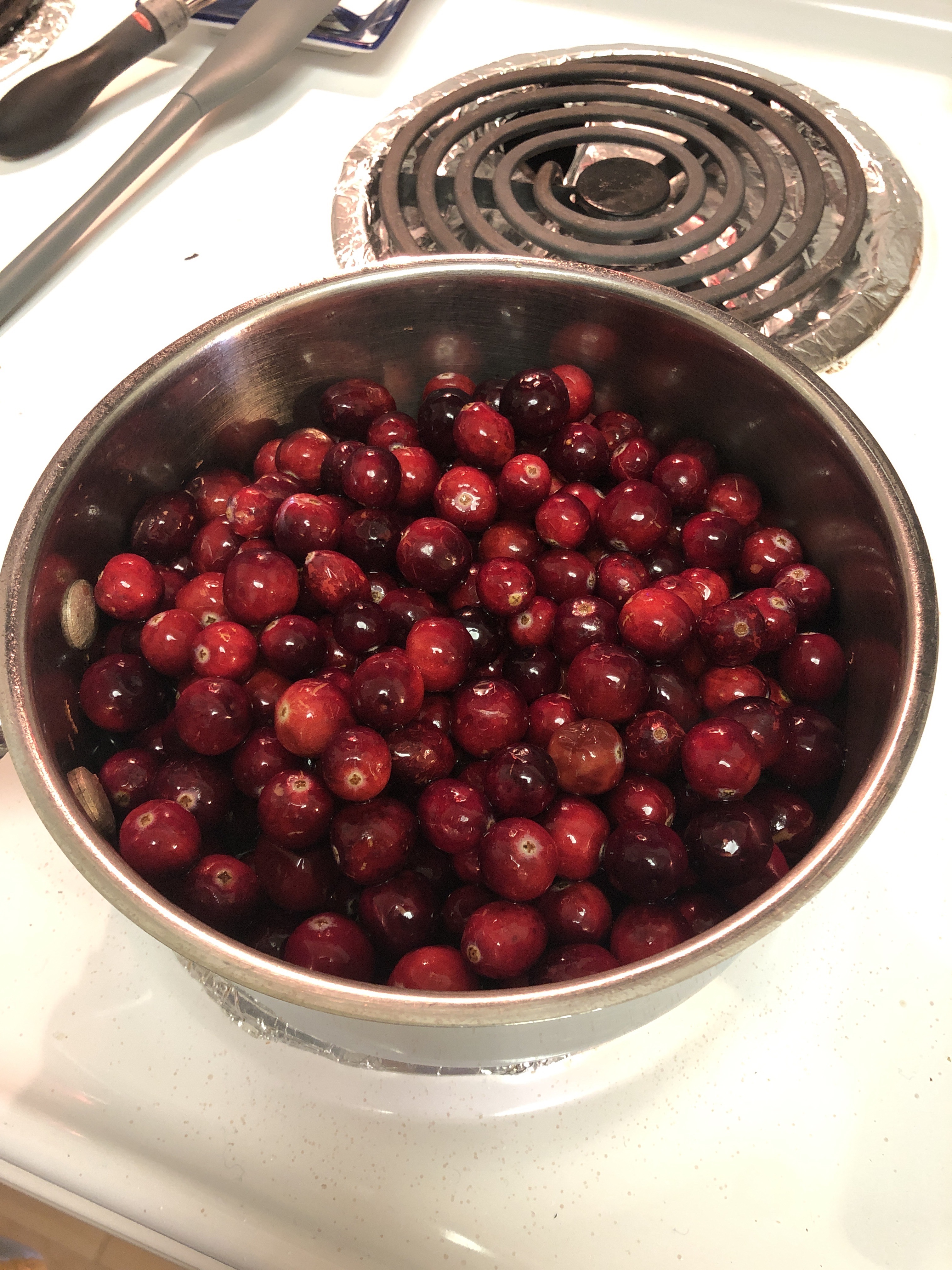 Dump in cranberries and water to almost cover, and a healthy-sized pinch of salt.