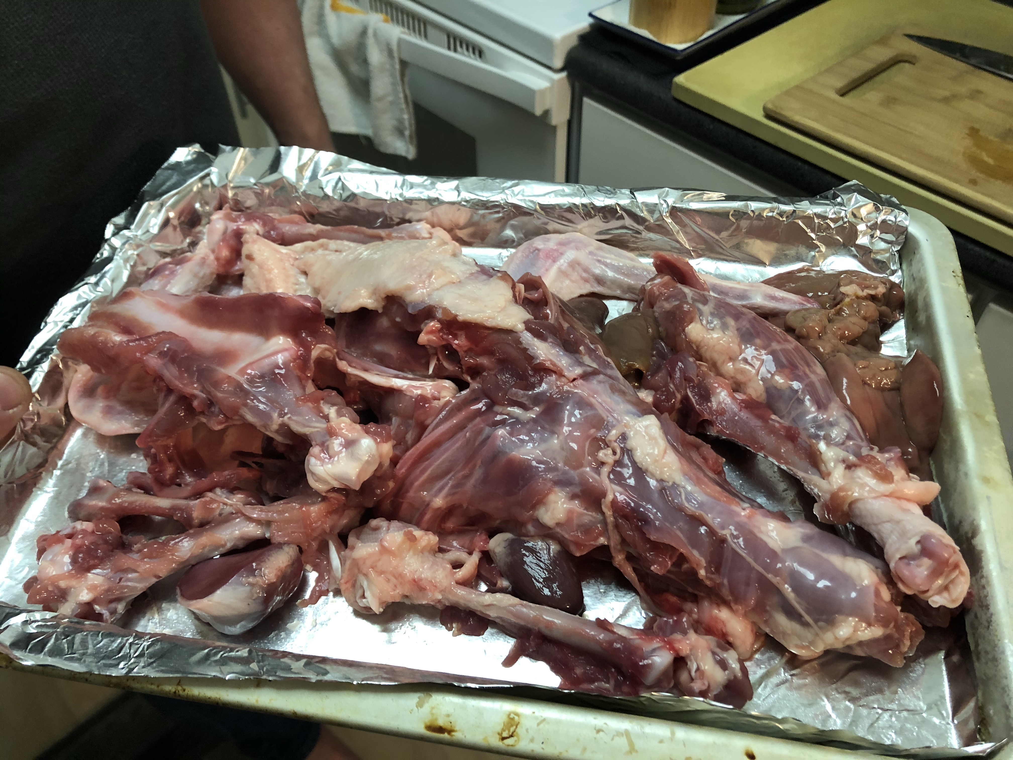 Now, the timing of this process winds up working out perfectly. Since the duck needed to brine for 36-48 hours, I needed to do this butchery task a couple days before T-day. This allowed me time to use the duck bones and oafel to make a nice, rich, dark stock.
